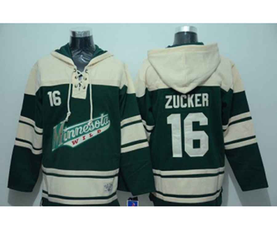- Minnesota Wilds #16 Jason Zucker Cream-Green pullover hooded