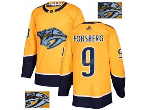 Nashville Predators #9 Filip Forsberg Yellow Home Authentic Fashion Gold Stitched NHL Jersey