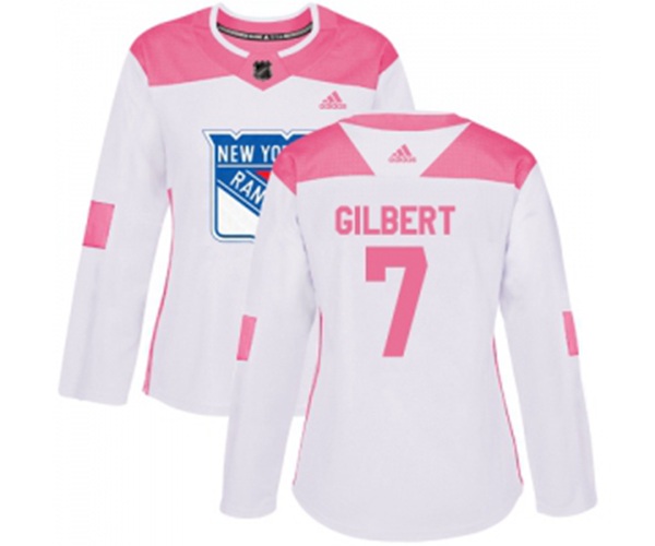 Women Adidas New York Rangers #7 Rod Gilbert Authentic White Pink Fashion NHL Jersey