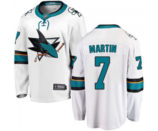 San Jose Sharks #7 Paul Martin Fanatics Branded White Away Breakaway NHL Jersey